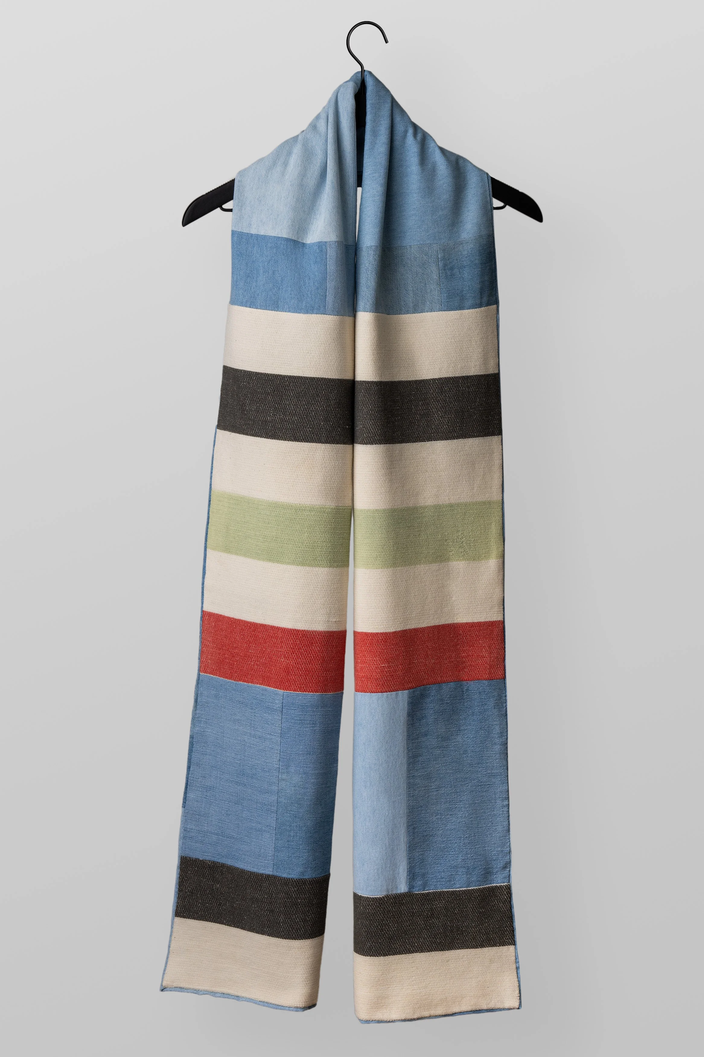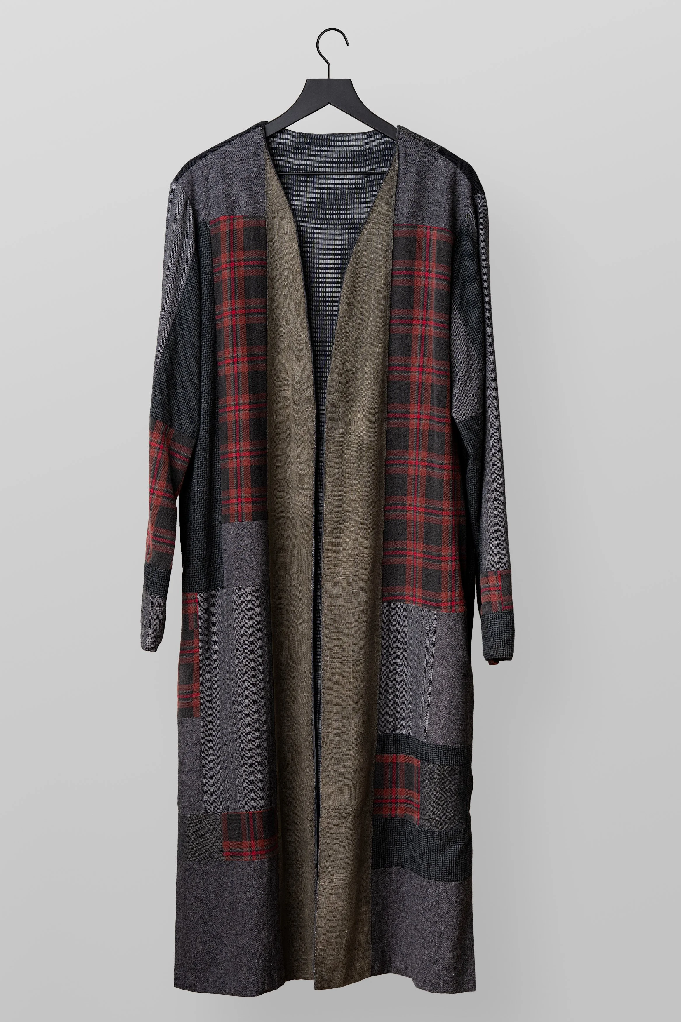 Many of our garments feature fine art techniques such as painting, relief printing, and textile collage work.
